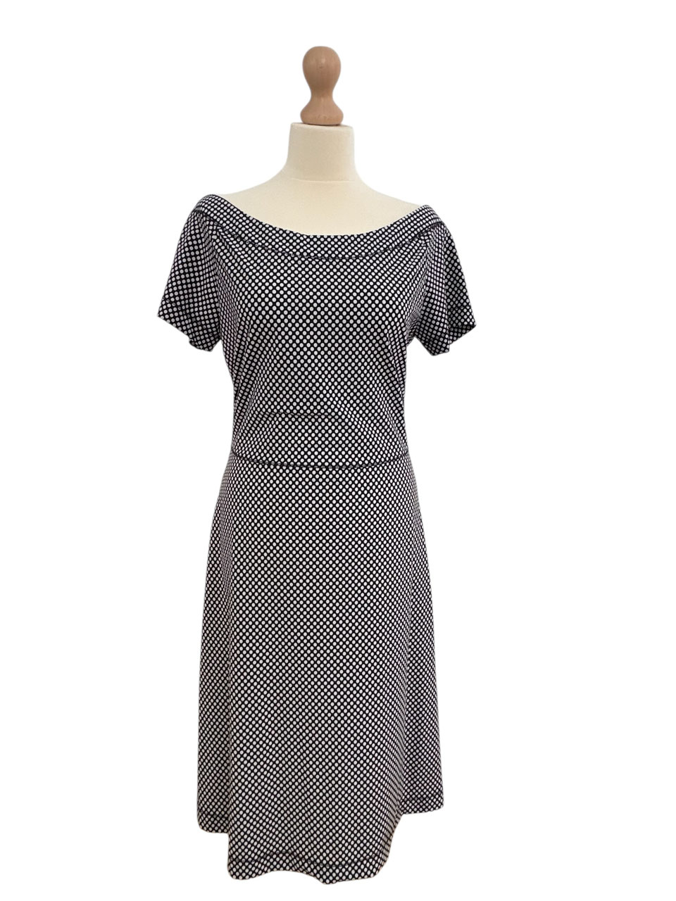 Jurkje is als nieuw. Stretch, niet gevoerd. (kleur: zwart/wit gestipt)
